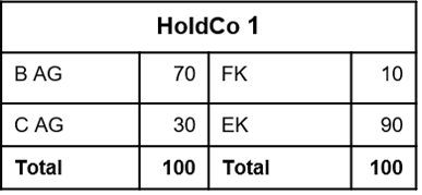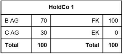 L'acquéreur (AkquiCo ; ayant droit à la convention) a acquis HoldCo 2 en 2025 pour 90, uniquement en raison des deux participations.