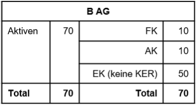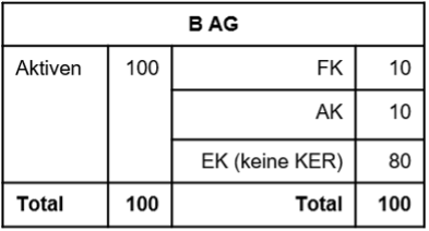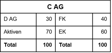 Le coût d'acquisition de C AG s'élève à 50. La valeur comptable est restée inchangée par rapport à la période précédente et s'élève toujours, tout comme la valeur fiscale, à 30.