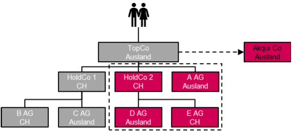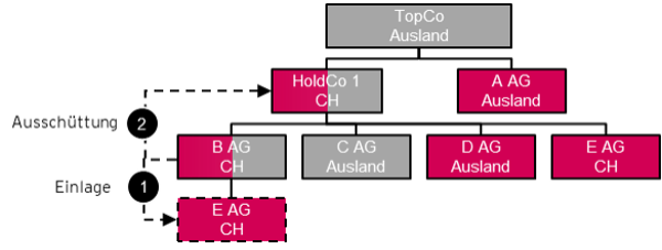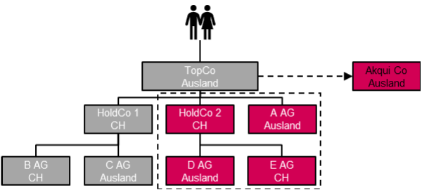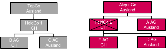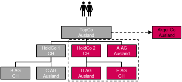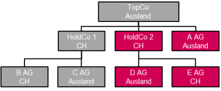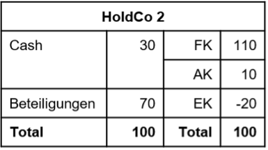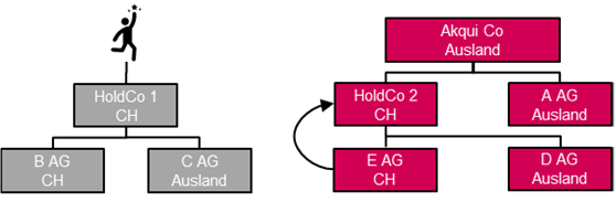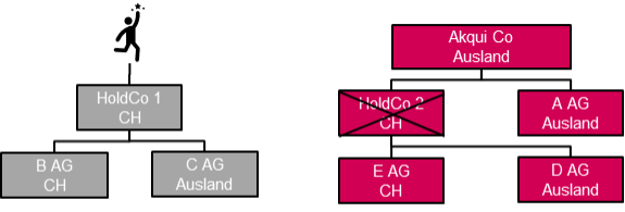 Nous avons renoncé à une analyse détaillée de la scission de HoldCo 1 CH, car la neutralité fiscale est en principe présupposée. Il existe désormais HoldCo 1 et HoldCo 2.
